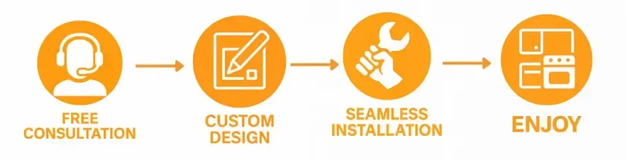 Every component is designed and crafted to maximize usable space and fit your exact layout, style, and organizational preferences. From hidden spice racks to glass-front display cabinets, options are available for both beauty and functionality, ensuring your kitchen works for your lifestyle.